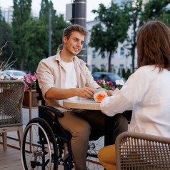 Эргономичная инвалидная кресло-коляска Ortonica Desk 4000 (Ортоника Деск 4000) представляет собой высококачественное и продуманное решение для людей с ограниченными возможностями. имеет подлокотники, регулируемые по углу наклона, которые за счет своей формы позволяют вплотную подъезжать к столу и другим поверхностям. Кроме того, кресло оснащено складной спинкой, что делает его удобным для хранения и транспортировки. Быстросъёмные задние колёса — это еще одна важная деталь, так как они позволяют легко убирать коляску в автомобиль.