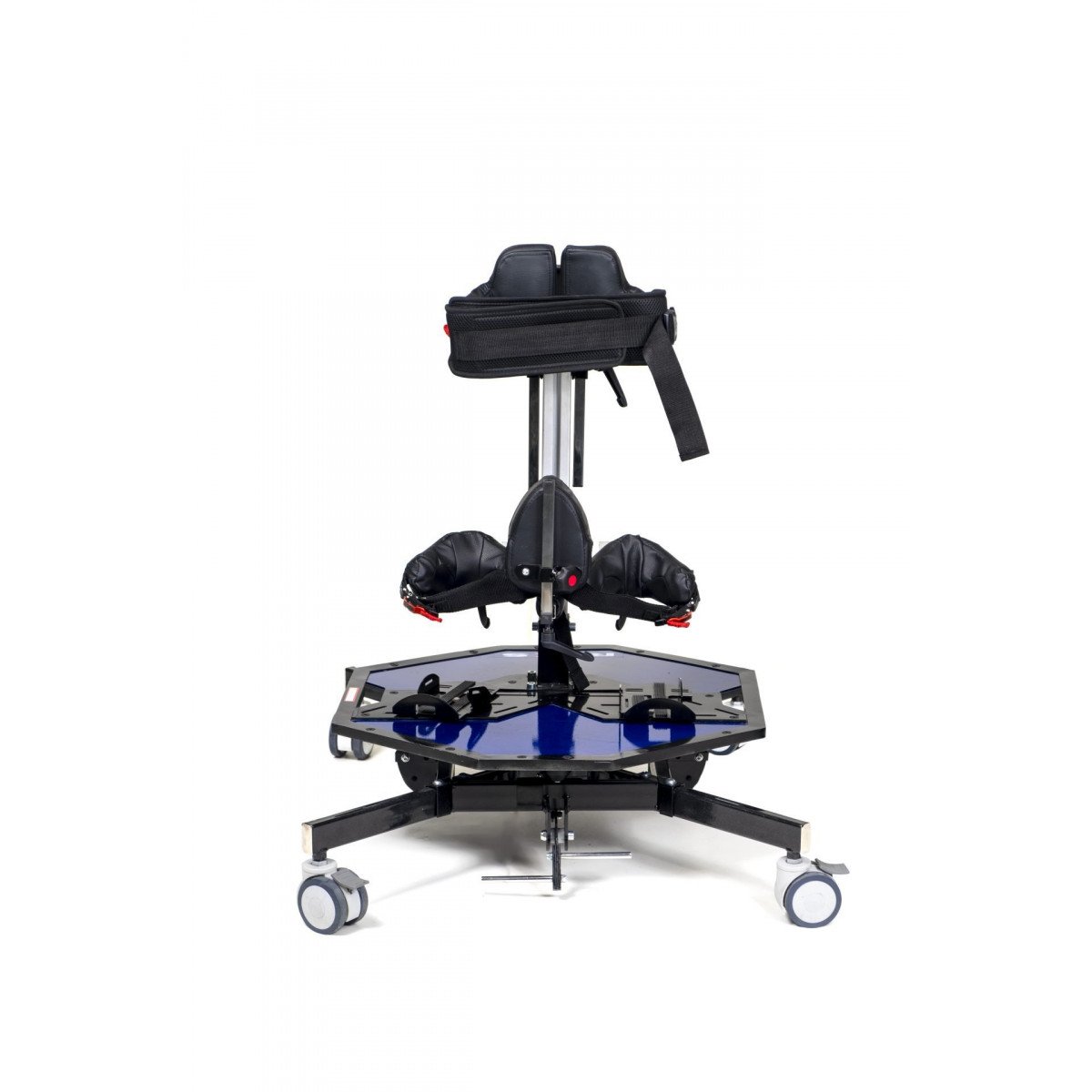 Особое внимание уделено безопасности: усиленные ремни и колёсные элементы рассчитаны на повышенные нагрузки, обеспечивая устойчивость во время занятий. Вертикализатор способствует развитию навыков стояния, тренировке равновесия и поддержанию общего физического состояния ребёнка.