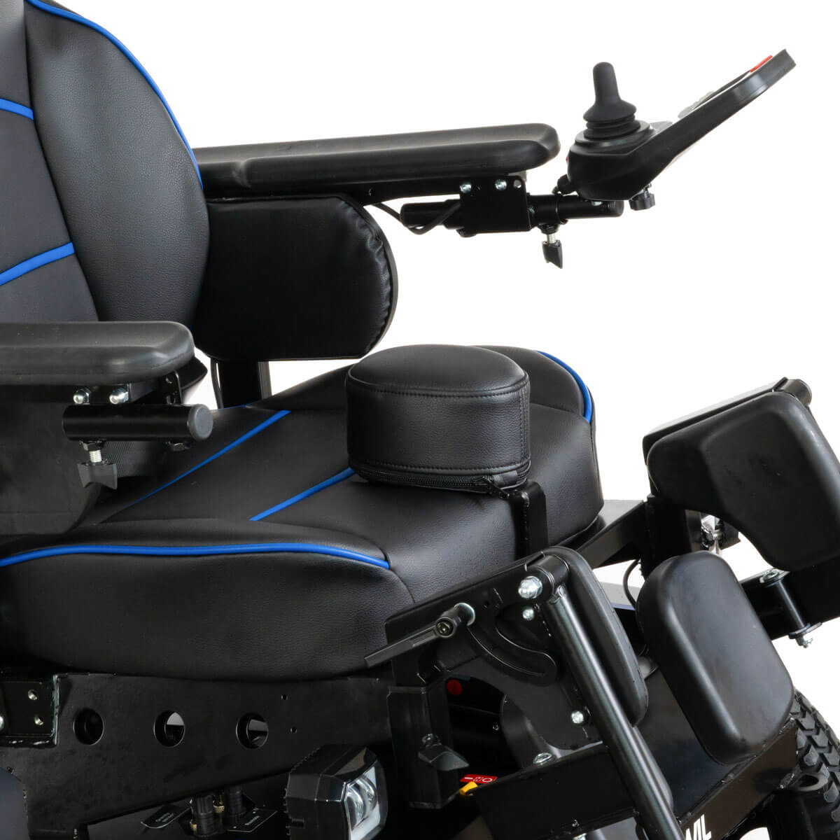 Коляска оснащена ортопедической подушкой сиденья и спинкой, что обеспечивает максимальный комфорт даже при длительном использовании. Широкие подлокотники, которые можно поднять, делают пересадку пассажиров более лёгкой и удобной.