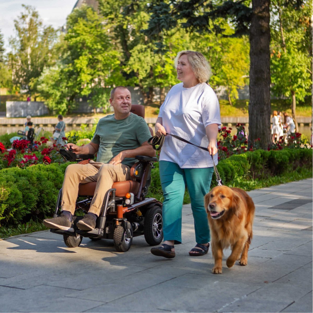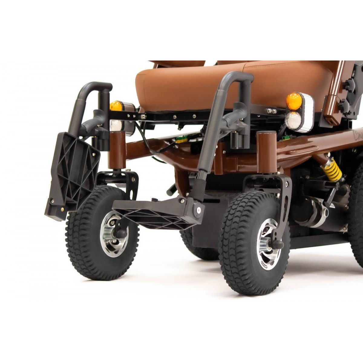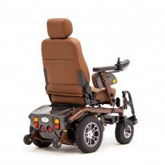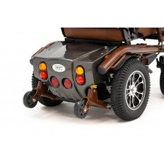 Внутри кресла-коляски реализованы мощные 500-ваттные моторы, которые установлены по одному на каждое заднее колесо. Такое решение обеспечивает высокую манёвренность и достаточную мощность для преодоления различных препятствий. В паре с ними работают энергоёмкие свинцово-кислотные аккумуляторы на 75 АН, которые гарантируют значительный запас хода. В активном режиме управления такое сочетание позволяет пользователю без особых усилий проехать до 40 км по асфальтовым дорогам.