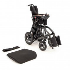 Коляска легко складывается и не занимает много места, поэтому её удобно хранить дома и перевозить в автомобиле. Небольшой вес коляски позволяет легко поднимать, переносить и загружать её в багажник. Съёмный аккумулятор облегчает эксплуатацию — его можно быстро заменить или зарядить отдельно от коляски.