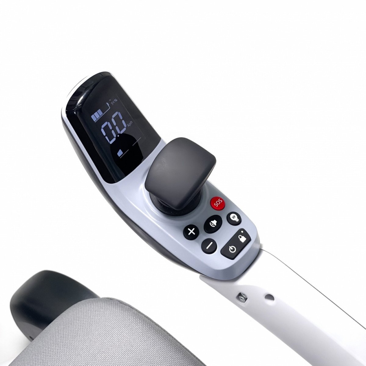 Рама выполнена из прочного алюминия с защитой от коррозии, что обеспечивает надёжность при ежедневной эксплуатации. В сложенном виде коляска занимает минимум места и помещается в багажник автомобиля. Управление осуществляется манипулятором, который можно установить под удобную руку, а через мобильное приложение доступны дополнительные функции контроля. В комплект входит зарядное устройство и всё необходимое для использования.