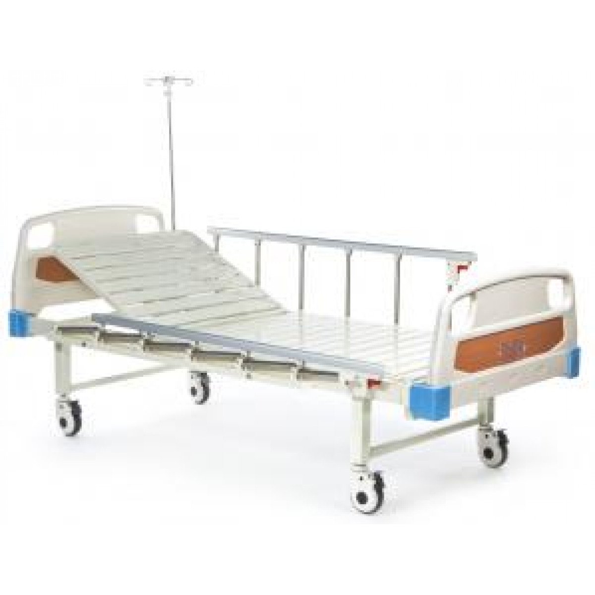•Кровать с механическим приводом позволяет настраивать угол, под которым находится изголовье. Вращая складную пластиковую рукоятку, персонал больницы может регулировать головную секцию в диапазоне от 0 до 70 градусов.•Важное требование к кровати для медицинских учреждений – высокий уровень гигиены, который в данной модели соблюдается в полной мере. ABS-пластик, медицинская сталь, антикоррозийное гигиеничное полимерное покрытие металлических элементов – эти материалы отлично поддаются дезинфекции.