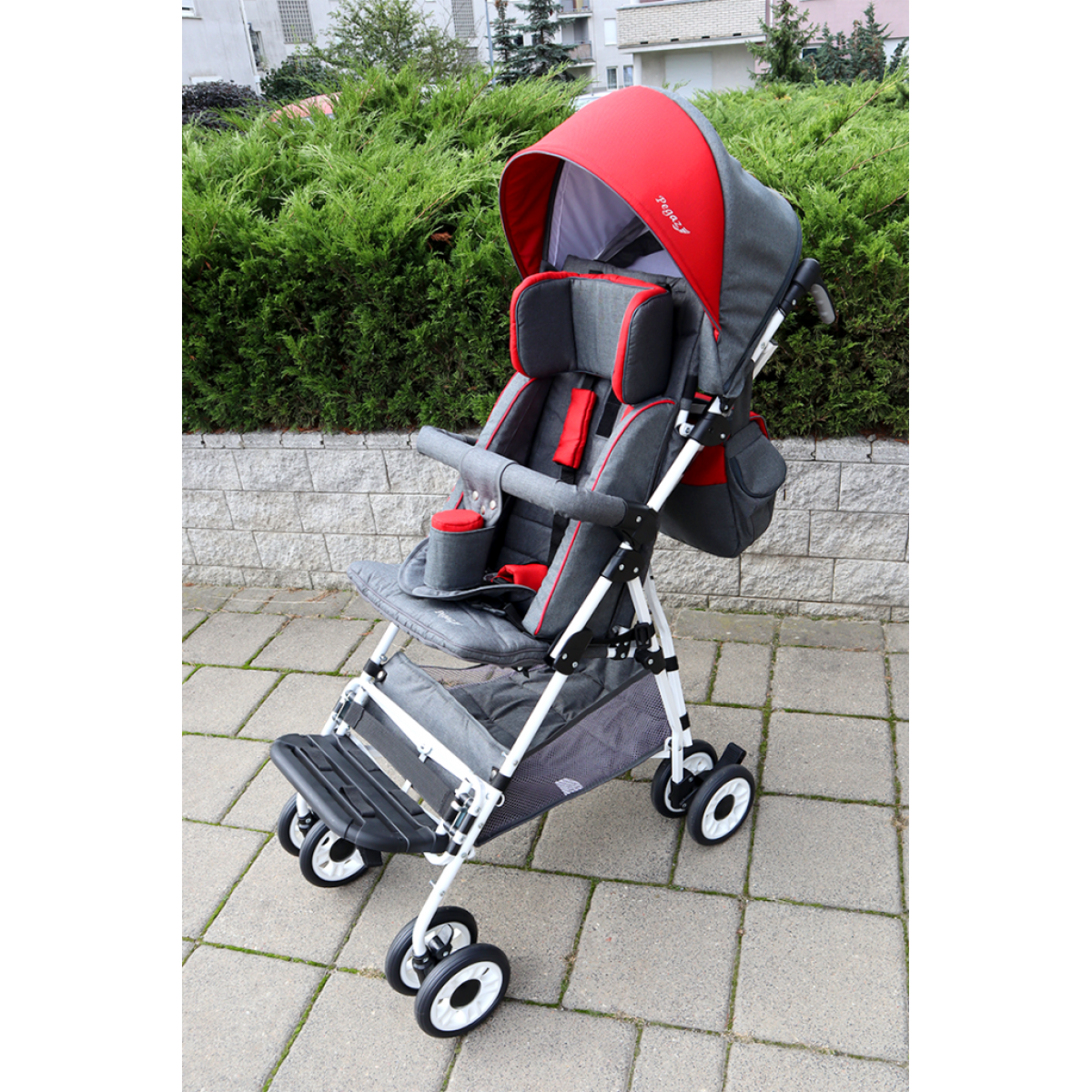 Сиденье и спинка коляски регулируются по глубине, высоте и углу наклона — Pegaz буквально «растёт» вместе с ребёнком. Подставка для ног и мягкие ремни фиксации обеспечивают правильную посадку и безопасность. Отдельная амортизация на каждом колесе делает движение плавным, а стояночный тормоз гарантирует устойчивость на остановках.