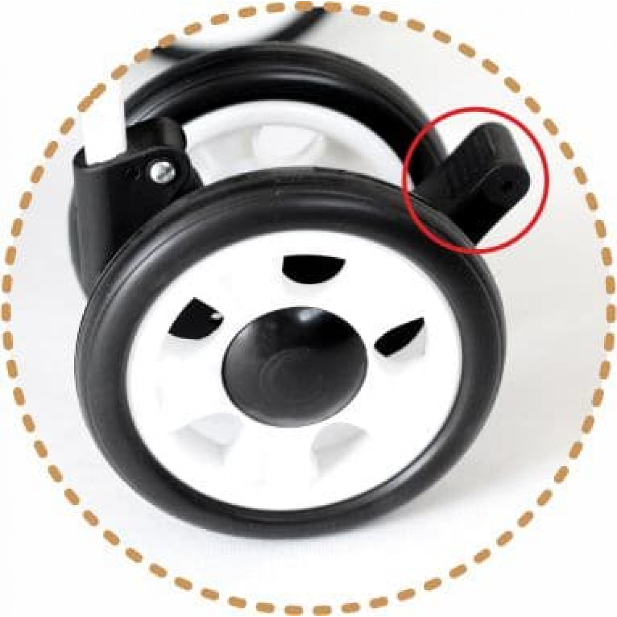 - Передние колёса с блокировкой направления и амортизацией