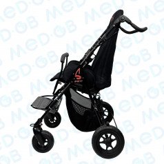 Сиденье и спинка коляски изготовлены из перфорированного гипоаллергенного материала, что минимизирует риск возникновения аллергических реакций. Этот материал легко очищается, благодаря чему за ним просто ухаживать — нет необходимости использовать специальные чистящие средства, что удобно для родителей, опекунов и заботливых специалистов по реабилитации.