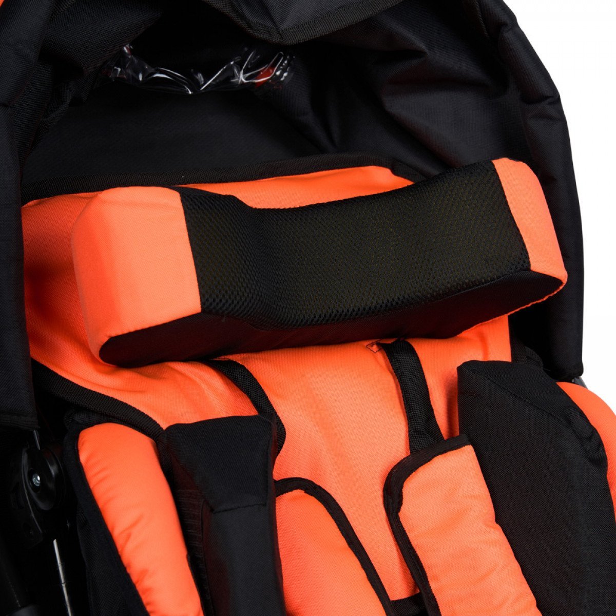 Для фиксации и поддержки ребёнка предусмотрены пятиточечный ремень, съёмный подголовник, боковые фиксаторы и абдуктор. Сиденье можно установить как лицом к родителю, так и по ходу движения, а от непогоды защищают регулируемый капюшон и тёплая накидка на ноги.