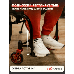 Кресло-коляска ЗСО Omega Active 144 (Омега Актив 144) — активная модель с лёгкой управляемостью и высокой манёвренностью, которая подойдёт для динамичного передвижения в помещении и на улице. Конструкция не складывается полностью, но за счёт складной спинки и быстросъёмных колёс коляску удобно перевозить и хранить.
