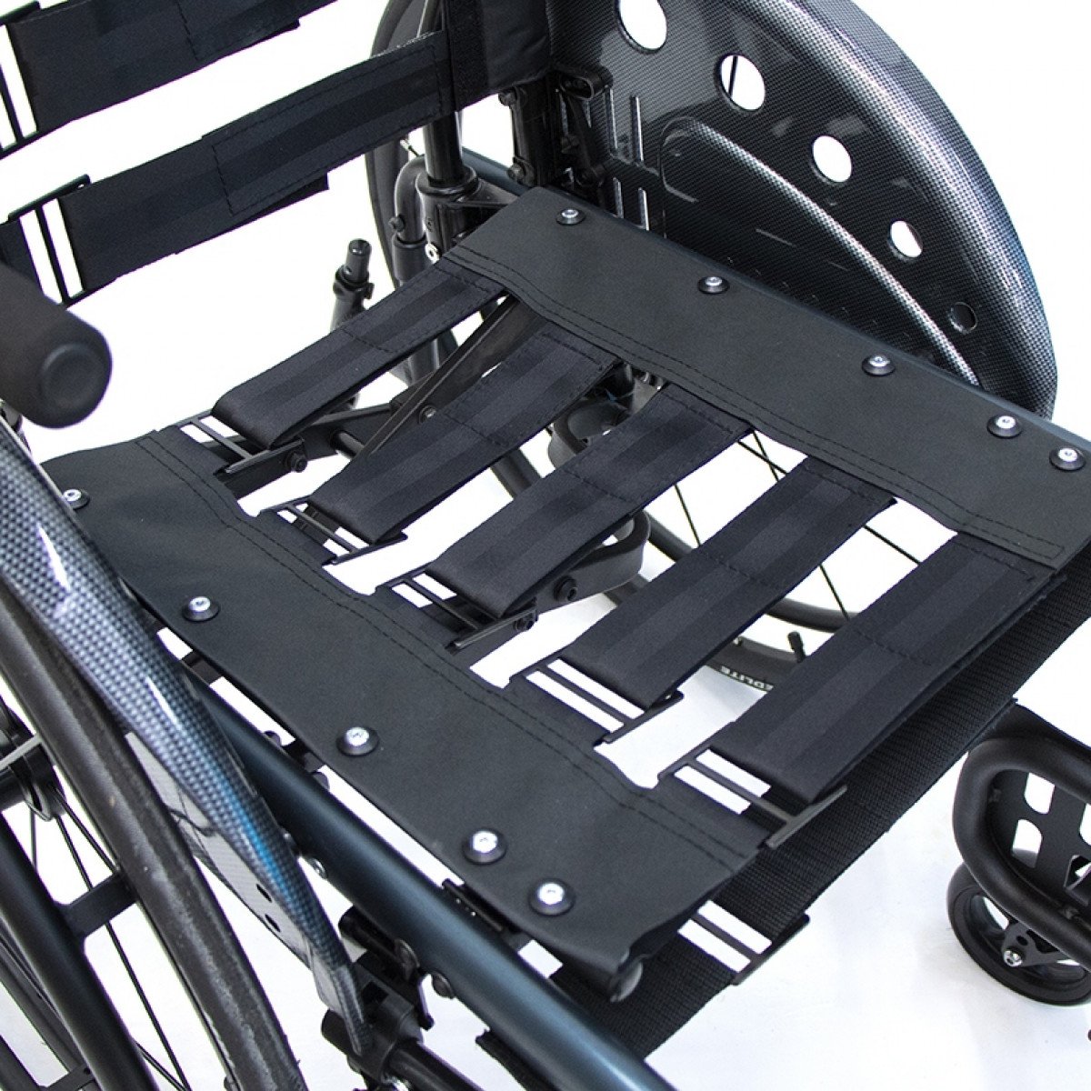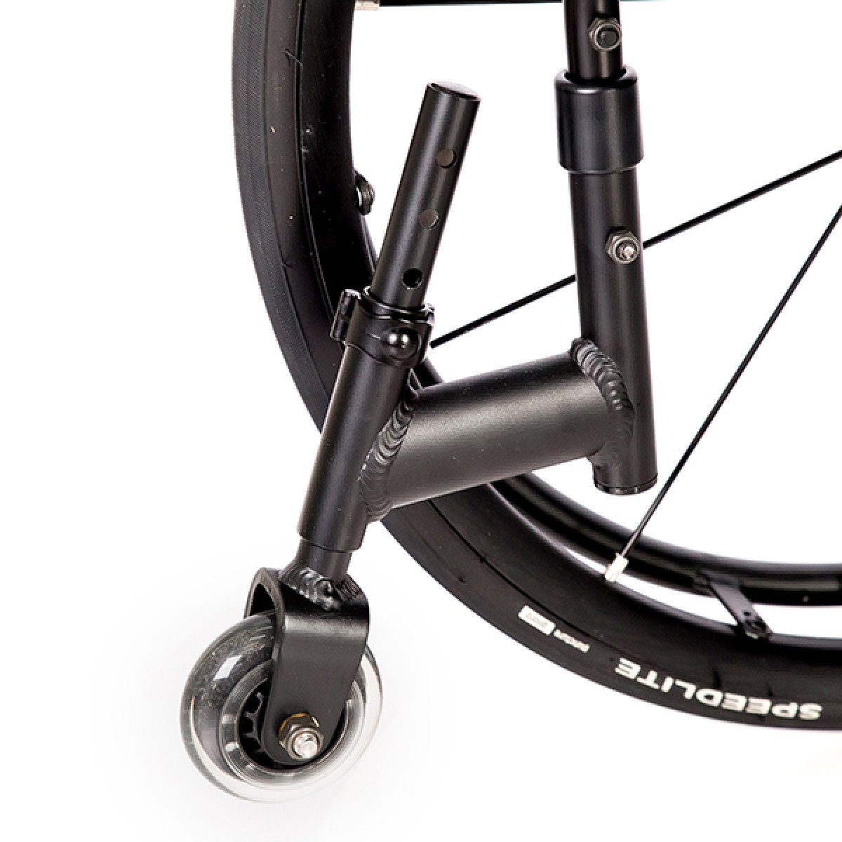 Коляска обеспечивает более плавное движение за счёт амортизаторов в вилках передних колёс с регулировкой жёсткости — это снижает вибрацию и нагрузку при езде по неровным поверхностям. Подлокотники съёмные, с мягкой опорой и боковой защитой, что упрощает пересаживание и делает посадку устойчивее.
