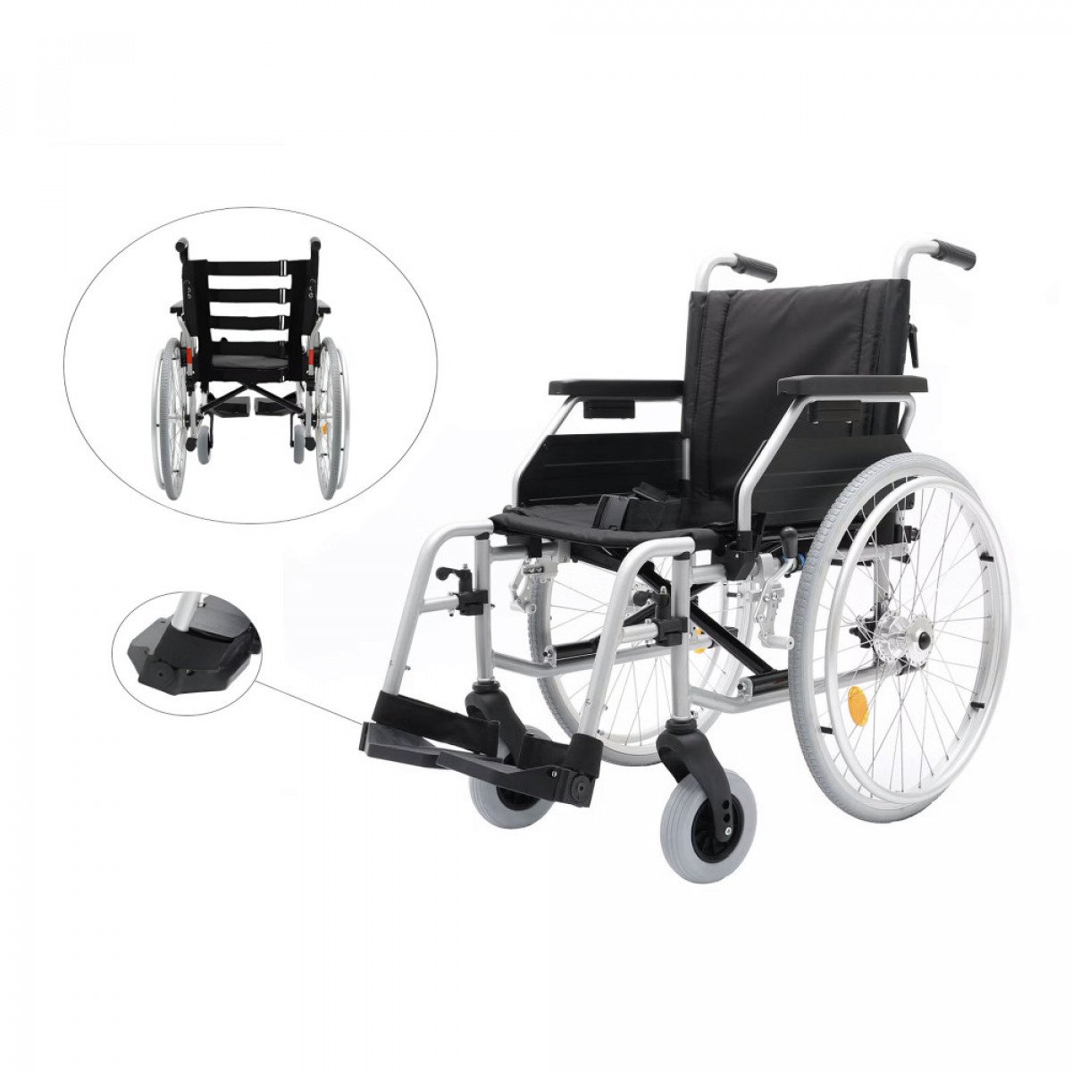 Кресло-коляска Dietz Tomtar MR-LG также оборудовано подлокотниками и подножками, которые можно снять, откинуть или отрегулировать по высоте. Это позволяет пользователю настроить их в соответствии с индивидуальными требованиями.