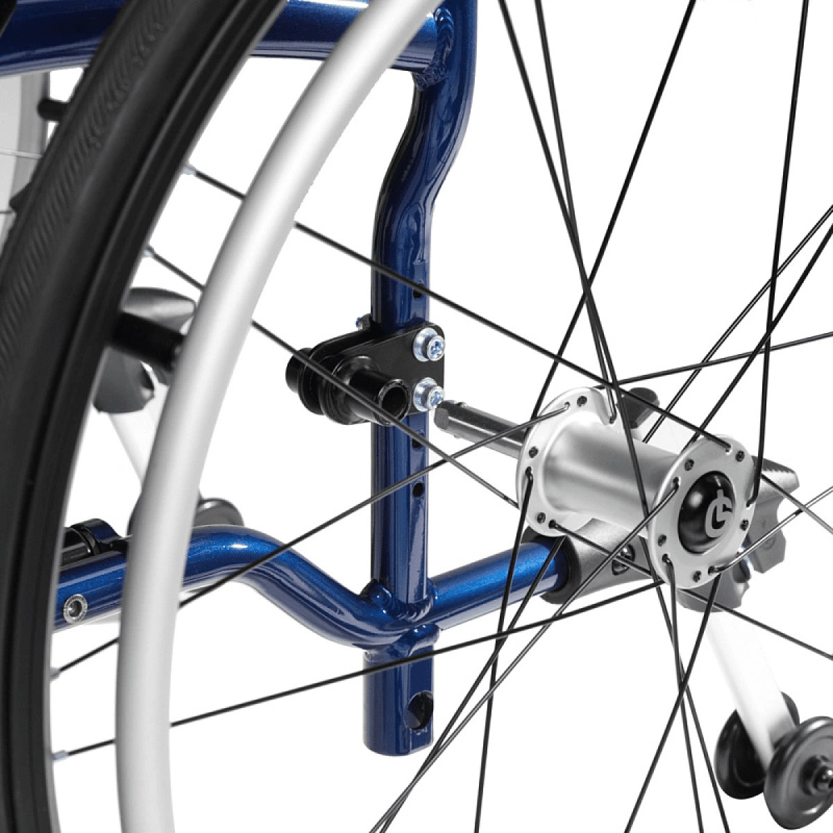 - Быстросъёмные задние колёса регулируются по вертикали и по горизонтали