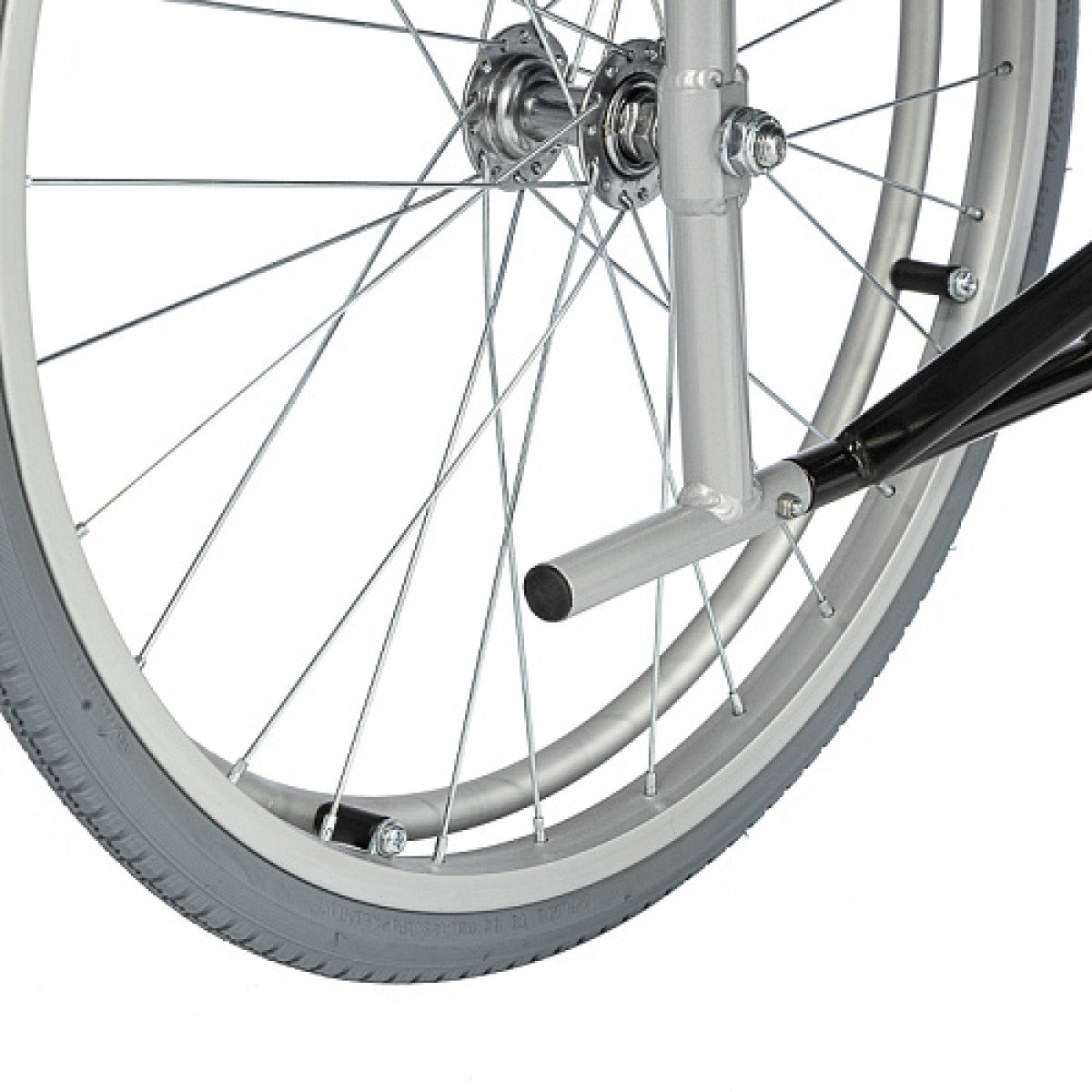 Для сопровождающего предусмотрены съёмные ручки и упоры, а задние колёса оснащены надёжными стояночными тормозами для безопасной фиксации коляски.
