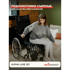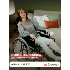 Кресло-коляска INTCO Alpha Luxe 107 (Интко Альфа Люкс 107) — складная модель с ручным приводом для дома и улицы. Главная особенность — удлинитель спинки и широкий диапазон настроек, которые позволяют точнее адаптировать посадку под пользователя и обеспечить более комфортную поддержку.