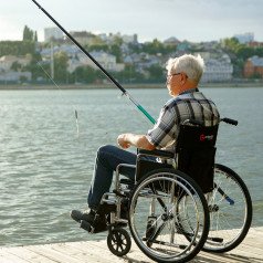 Для удобства пользователя предусмотрены съёмные подлокотники, регулируемые подножки и ручки для сопровождающего. На спинке есть карман для необходимых мелочей. Модель оптимально подходит для передвижения по ровным покрытиям и доступна в разных вариантах ширины сиденья.