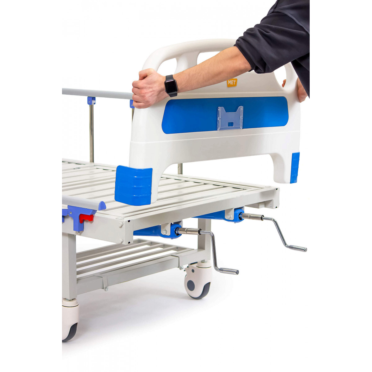 Met DM-370 (Мет ДМ-370) — четырёхсекционная медицинская кровать с регулировкой изголовья и ножной секции. Надёжное решение для ухода, где важно точное позиционирование без электропривода.