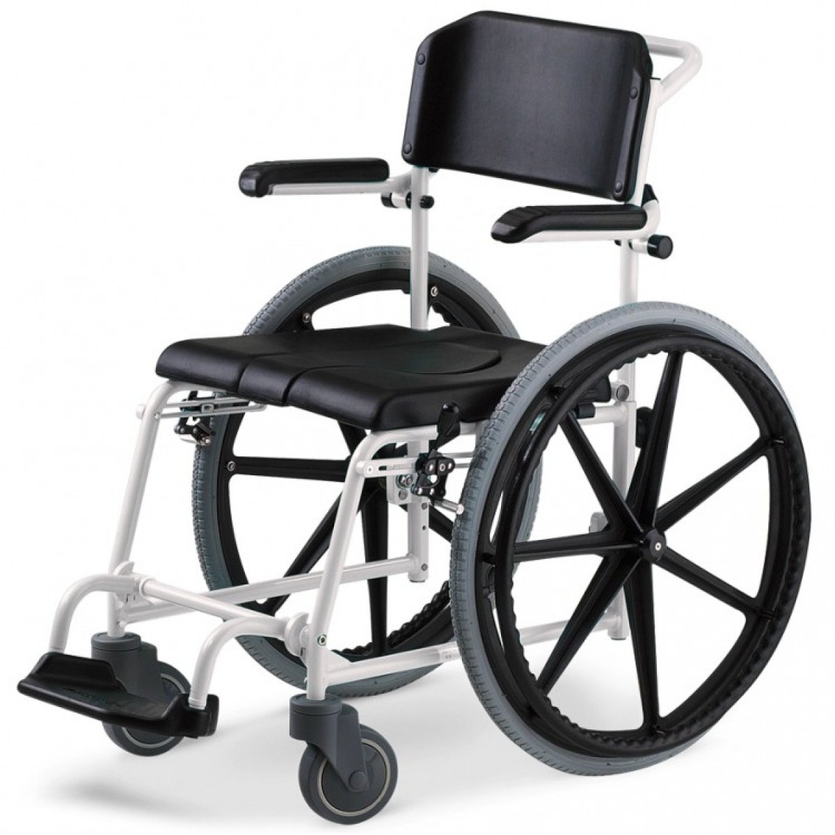 Конструкция разработана с учётом эксплуатации в помещении и вне его, обеспечивая удобство и безопасность при проведении санитарных процедур. Коляска помогает пользователю сохранять больше самостоятельности, а также облегчает работу сопровождающего персонала.