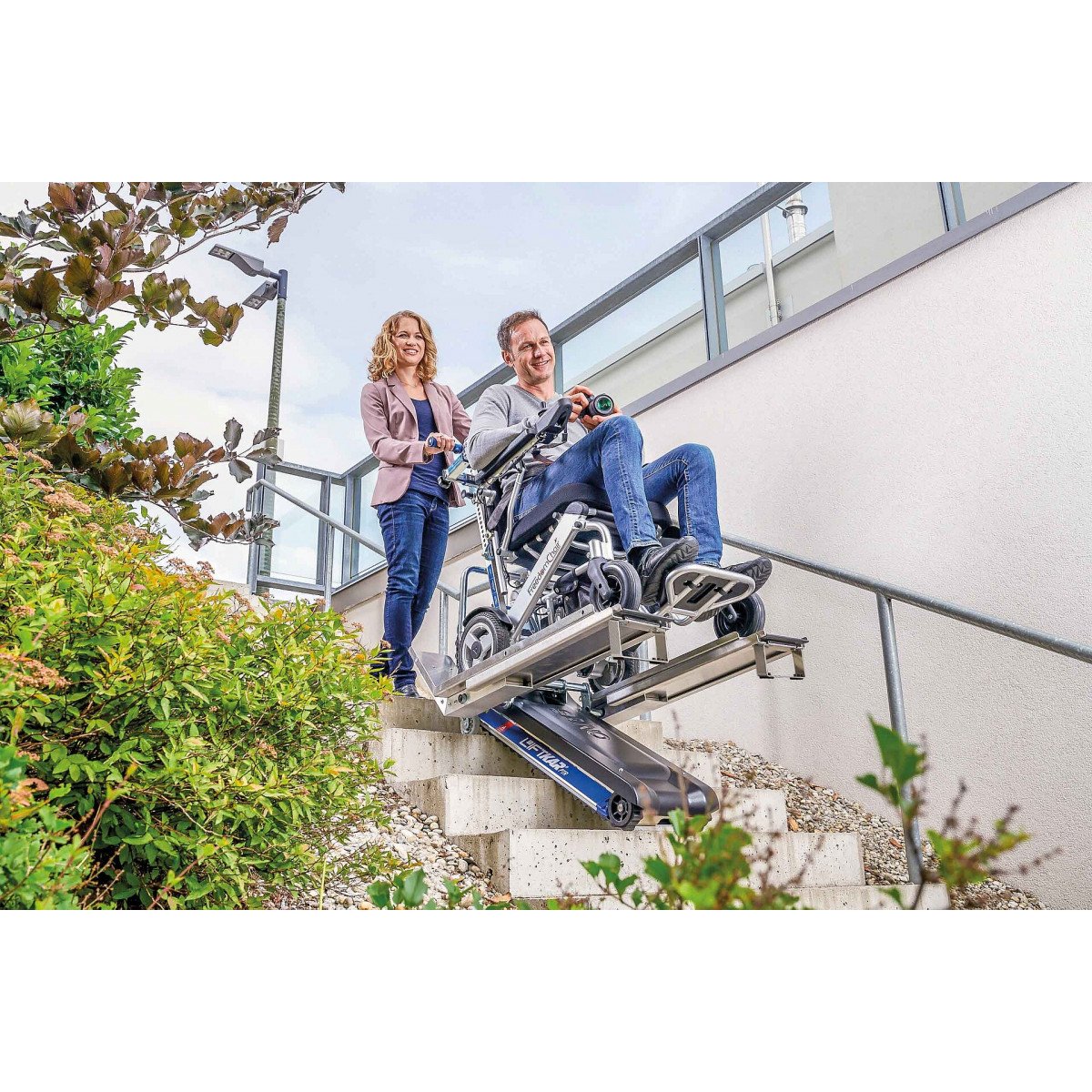 Устройство полностью компьютеризировано и оснащено современными системами управления. Плавный ход, надёжная фиксация коляски и простое управление с помощью рукоятки обеспечивают комфорт и безопасность как для пользователя, так и для сопровождающего.