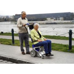 Эргономичное анатомическое сиденье и мягкие подлокотники обеспечивают комфорт во время движения. Подъёмник работает бесшумно, плавно трогается и останавливается, не создавая вибраций. Управление остаётся простым и интуитивным — сопровождающий контролирует все функции без лишних усилий. Компактная складная конструкция позволяет перевозить устройство в автомобиле и использовать его в любых поездках.