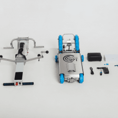 Конструкция подъёмника рассчитана на активную ежедневную эксплуатацию. Несущие элементы выполнены из прочной стали, а рулевая стойка из анодированного алюминия, благодаря чему устройство остаётся устойчивым и при этом удобным для сборки и перемещения. Привод и блок управления защищены прочным металлическим корпусом, устойчивым к ударам и износу, что увеличивает срок службы оборудования. Внешний вид продуман так, чтобы техника выглядела аккуратно и современно даже в общественном пространстве.