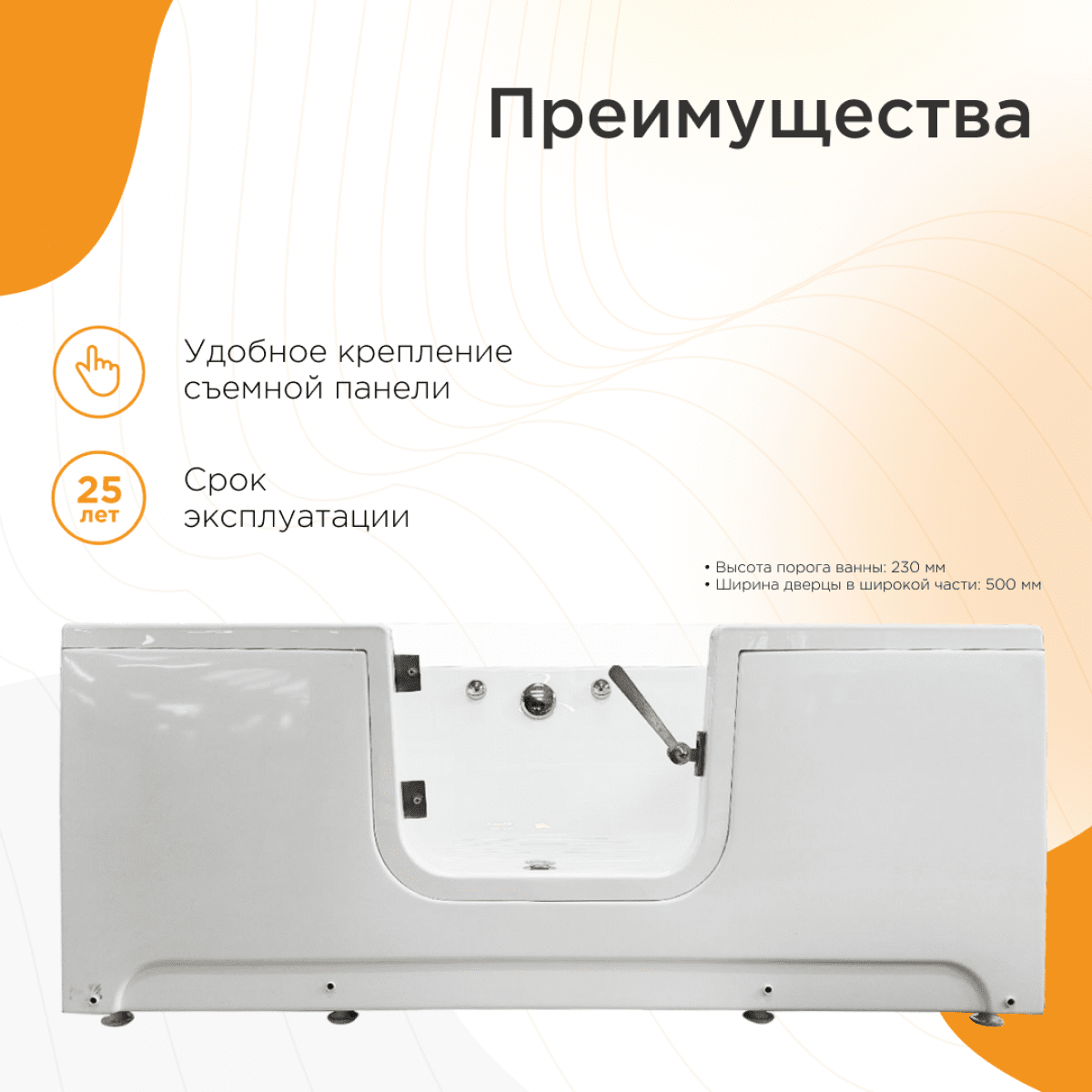 Конструкция продумана для полной герметичности и удобства. Дверца оснащена эластичным уплотнителем, предотвращающим малейшие протечки, и может быть навешена для открывания как вправо, так и влево, что позволяет идеально вписать ванну в планировку санузла. Грасс 3 — оптимальное сочетание медицинского функционала, обеспечивающего безопасность и самостоятельность.
