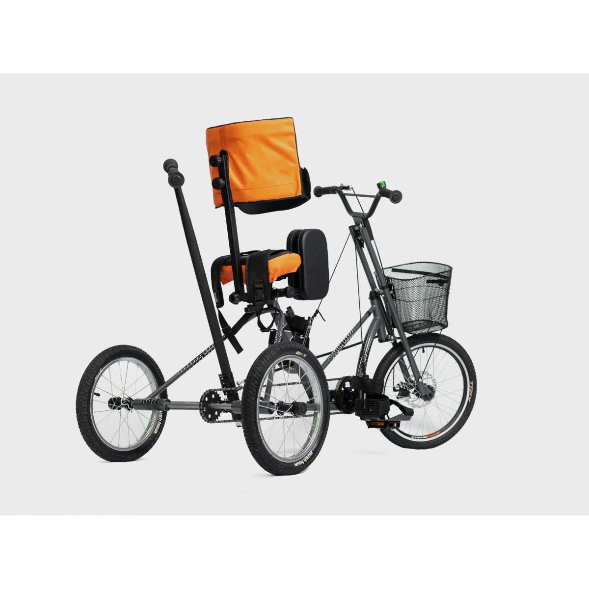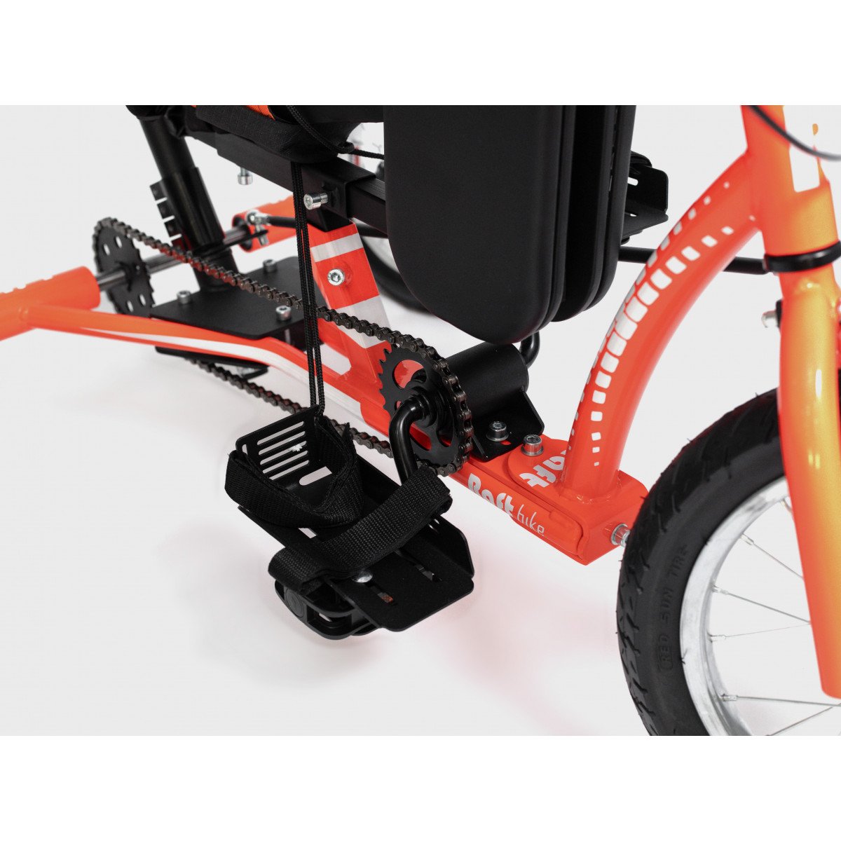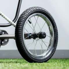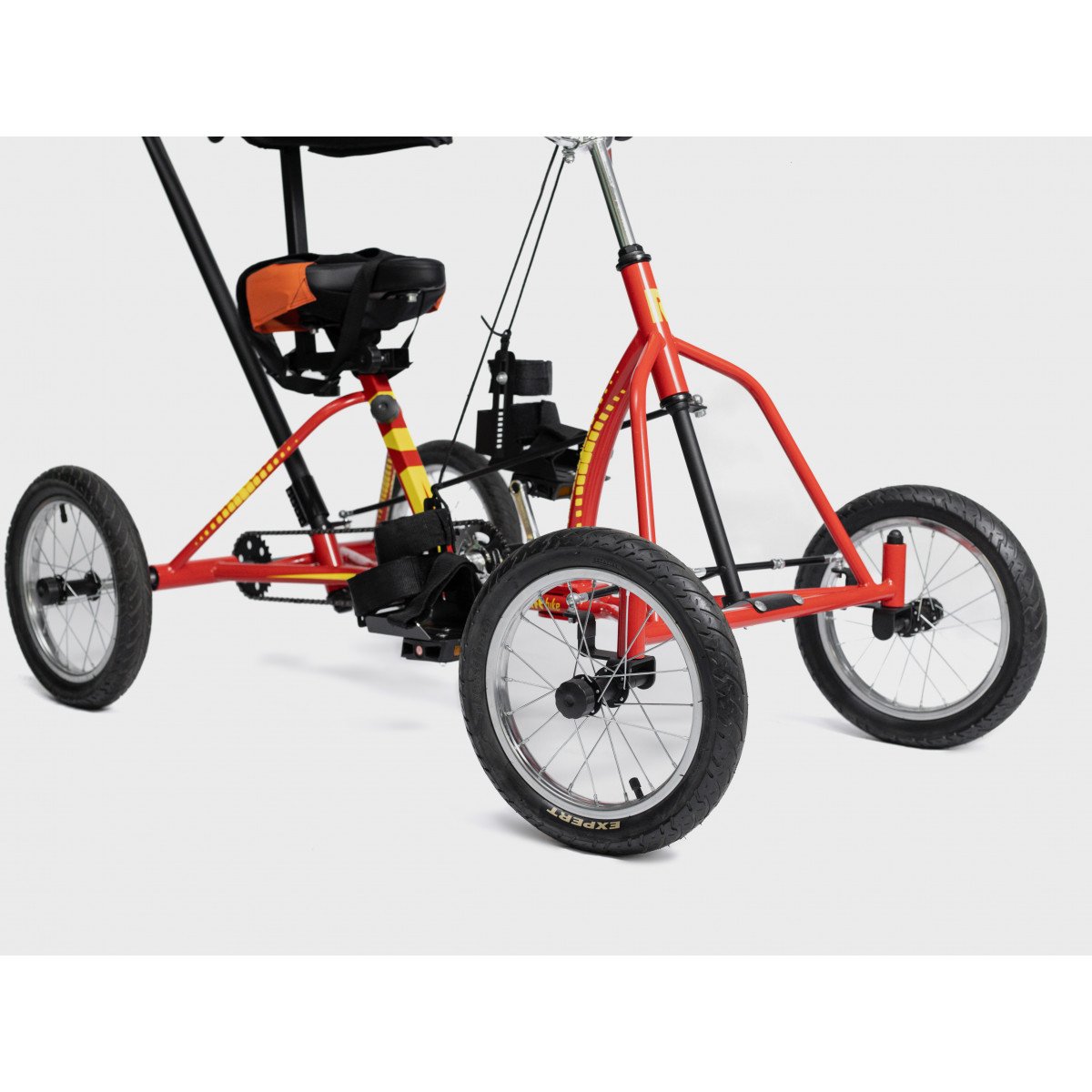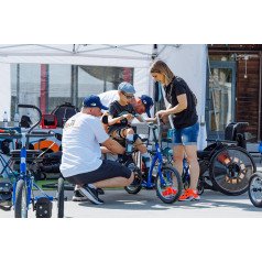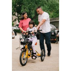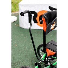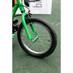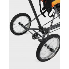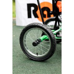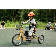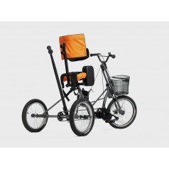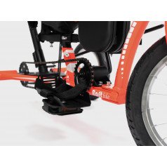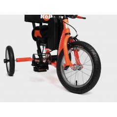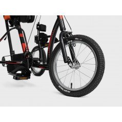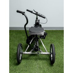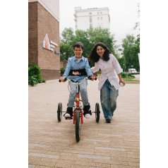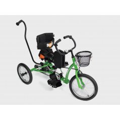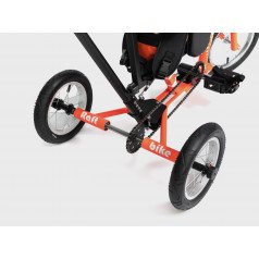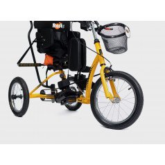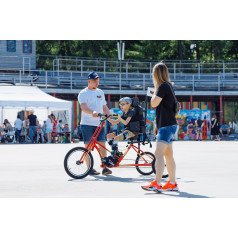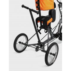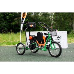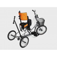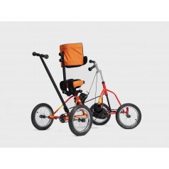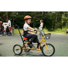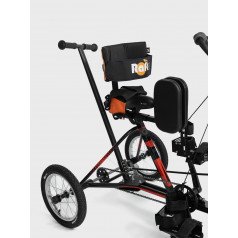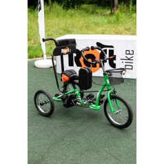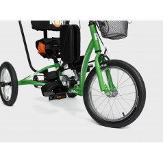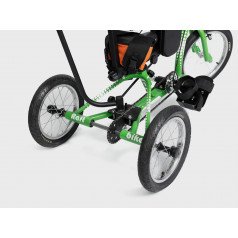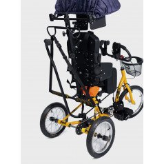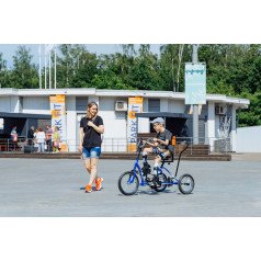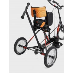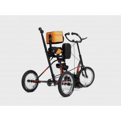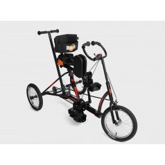 Велосипед обладает лёгким ходом благодаря уникальной геометрии рамы. Даже при минимальном усилии велосипед приводится в движении, что позволяет использовать его даже деткам со слабым тонусом мышц. Конструкция рамы выполнена таким образом, что велосипед легко может быть собран и разобран. Компактный, легко помещается в багажник автомобиля. Эргономическое сидение регулируется по высоте. Стояночный тормоз блокировки движения позволяет использовать велосипед в качестве комнатного тренажёра.