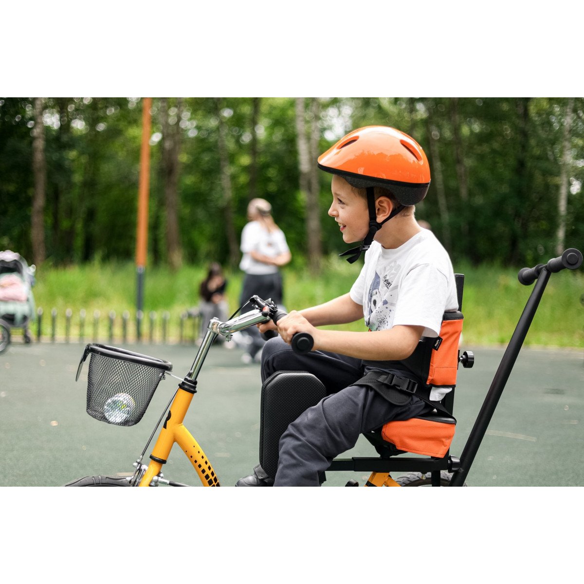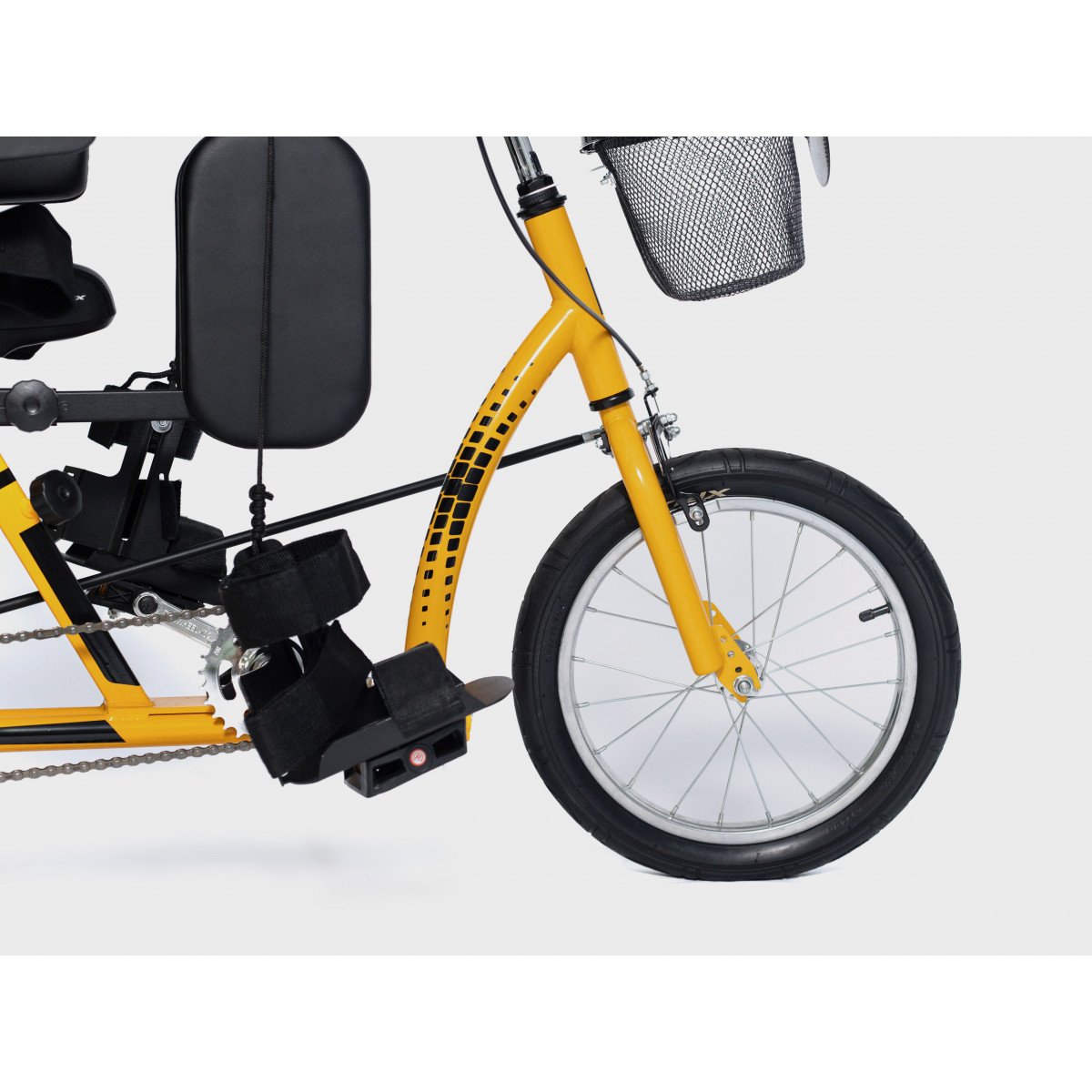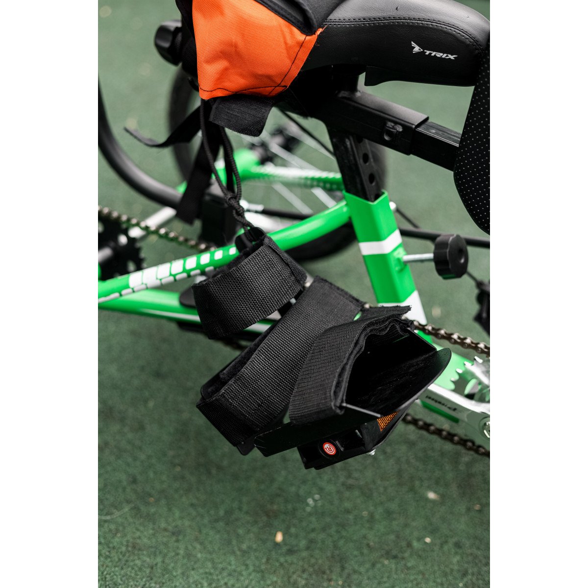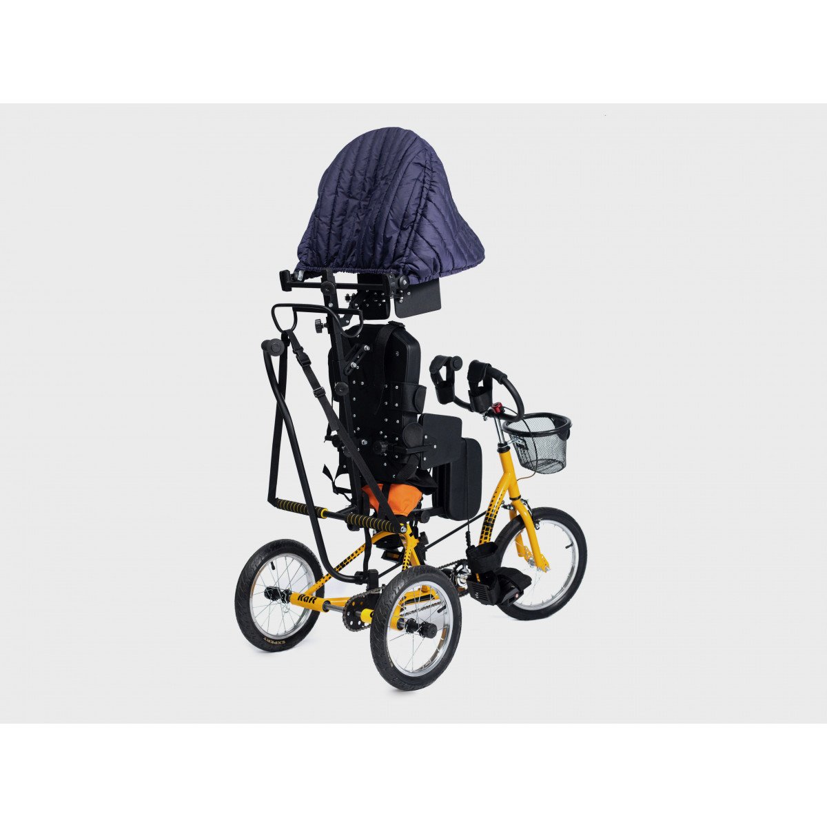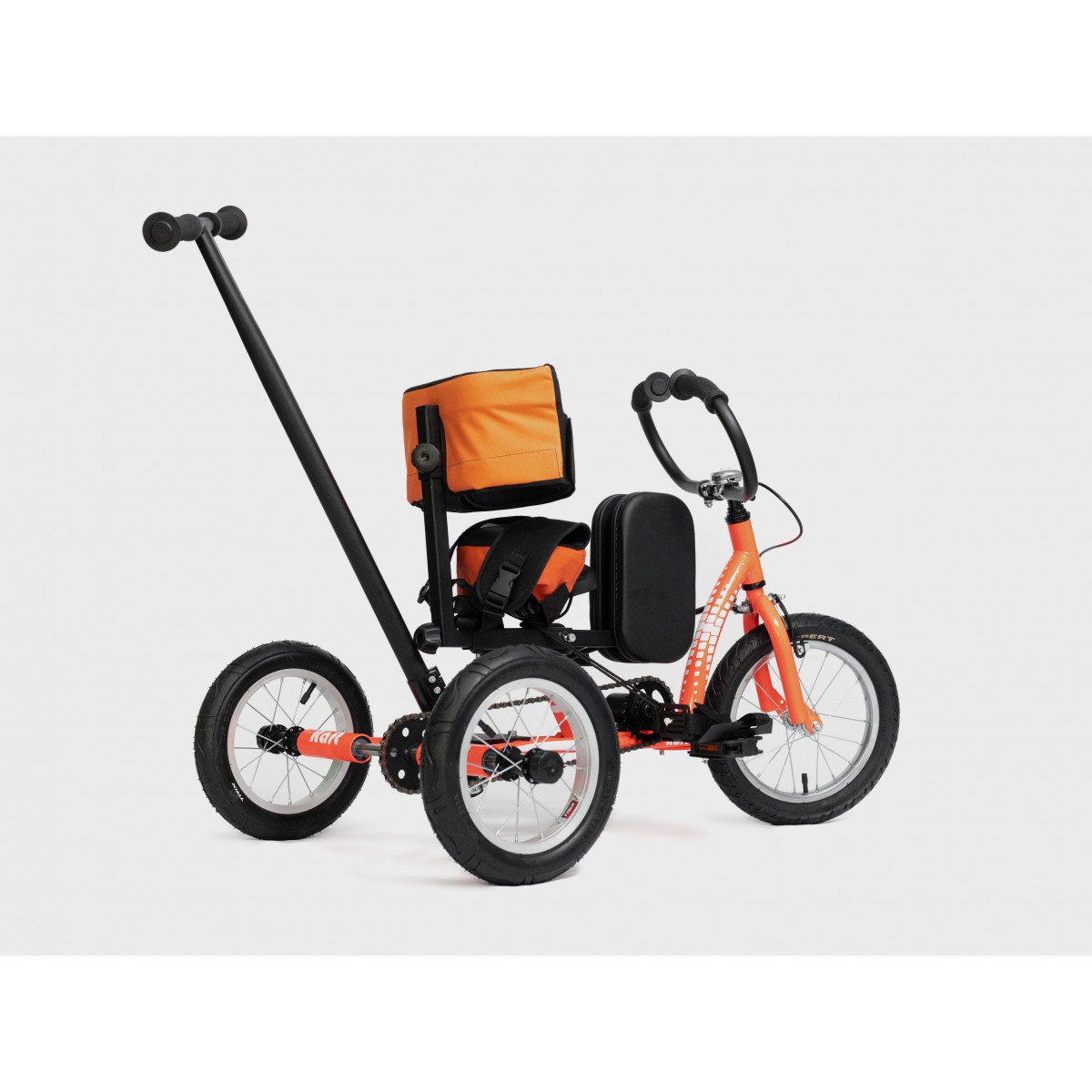 Велосипед обладает лёгким ходом благодаря уникальной геометрии рамы. Даже при минимальном усилии велосипед приводится в движении, что позволяет использовать его даже деткам со слабым тонусом мышц. Конструкция рамы выполнена таким образом, что велосипед легко может быть собран и разобран. Компактный, легко помещается в багажник автомобиля. Эргономическое сидение регулируется по высоте. Стояночный тормоз блокировки движения позволяет использовать велосипед в качестве комнатного тренажёра.
