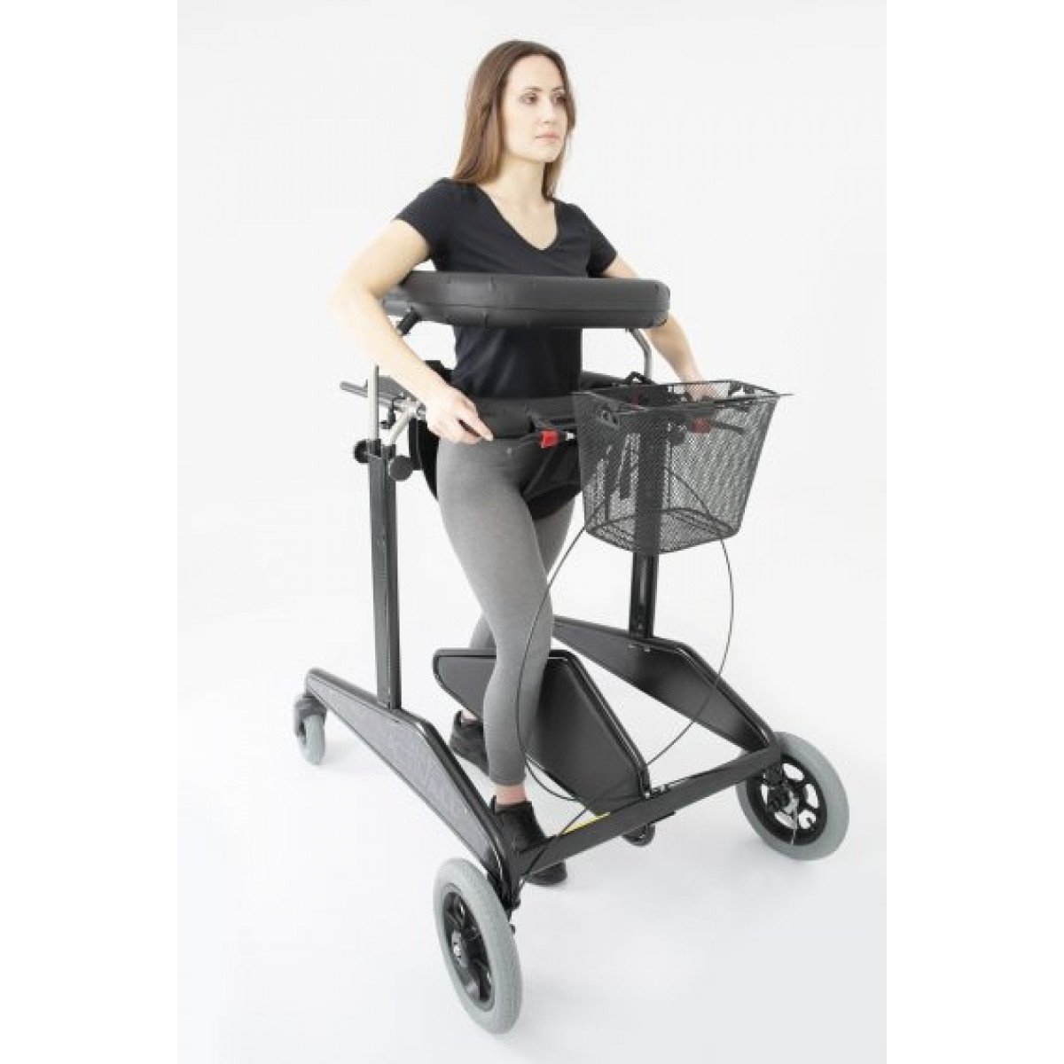 Также есть возможность использовать ручные тормоза для безопасности и корзину для личных вещей.