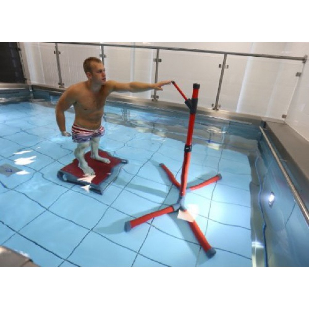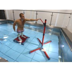 Высота конструкции регулируется в диапазоне от 160 до 210 см, что позволяет точно настроить тренажёр под рост пользователя и задачи терапии. При необходимости устройство можно использовать вместе с подводной балансировочной платформой, сочетая тренировку верхней части тела с развитием устойчивости и контроля корпуса.
