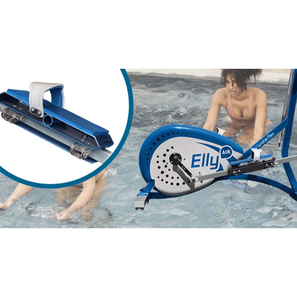 Водный эллиптический тренажёр Waterflex Elly Air (Вотерфлекс Элли Эир) — профессиональное решение для аквафитнеса и реабилитации в бассейне. Он задействует до 80% мышц тела, сочетая движения ходьбы, велосипеда и степпера, при этом полностью снимая ударную нагрузку с суставов.