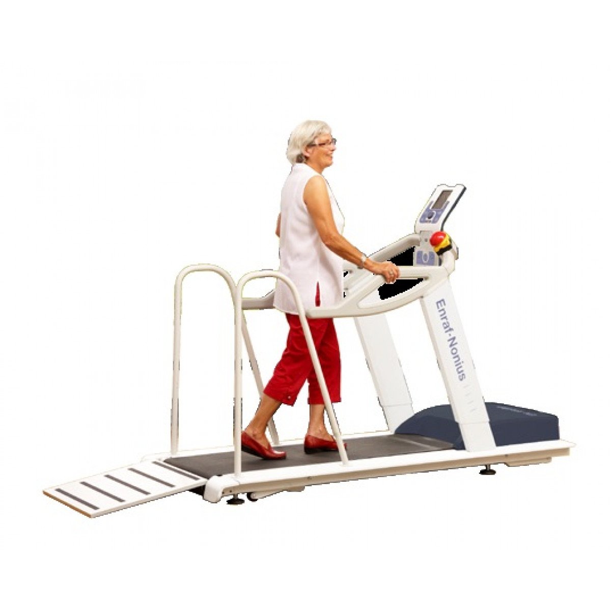 Реабилитационная беговая дорожка Enraf-Nonius Motion (Энаф-Нониус Моушн) предназначена для кинезотерапии и профилактики различных заболеваний, таких как кардиоваскулярные нарушения, диабет и остеопороз. Тренажёр регулирует скорость бегового полотна в зависимости от состояния пациента, автоматически останавливая его в случае сдвига и опасности падения. При возвращении пациента в правильное положение движение возобновляется. Пандус и поручни обеспечивают дополнительную безопасность для малоподвижных пациентов.