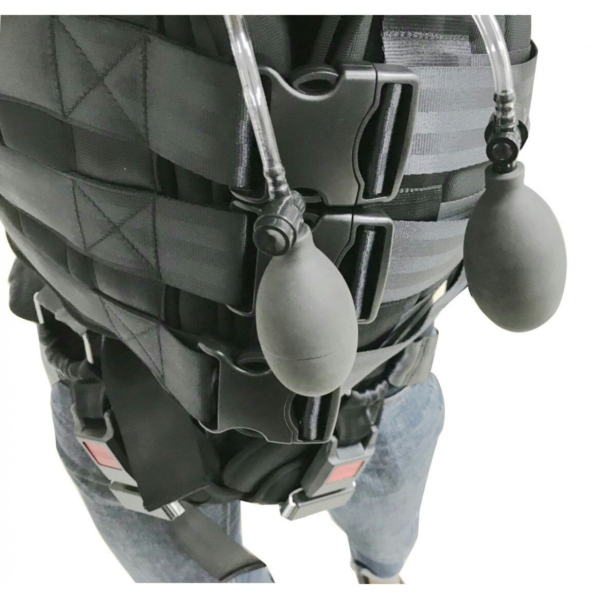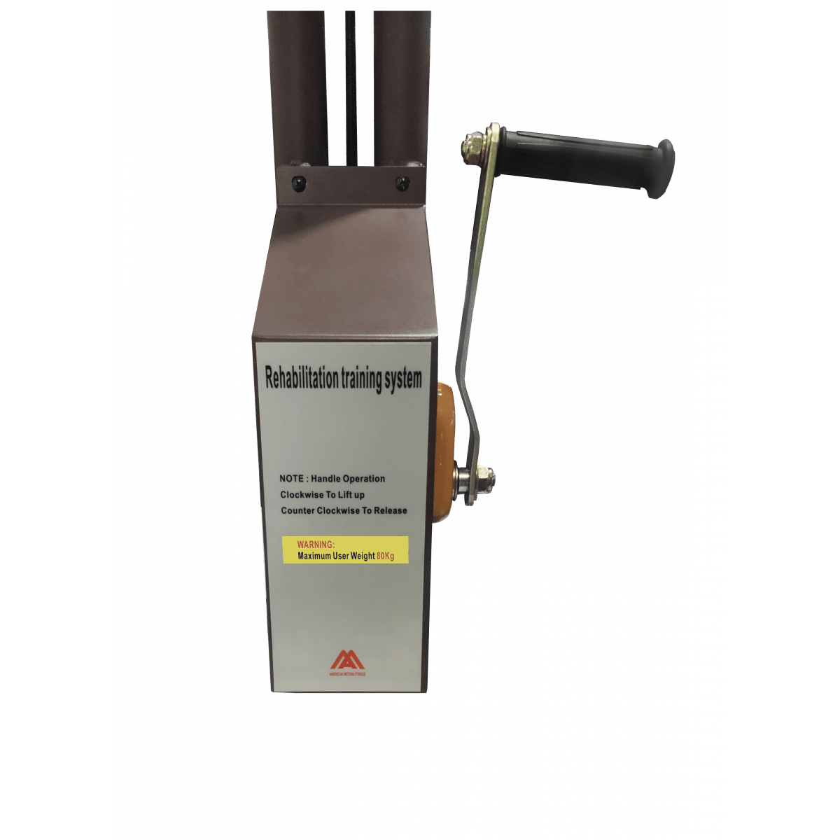 Регулировка подвеса осуществляется вручную — достаточно повернуть рукоятку. Крепление жилета можно установить на высоте 100–170 см от бегового полотна, что удобно для пользователей разного роста и возраста. При необходимости тренировки проводятся и без подвеса: мощный мотор выдерживает нагрузку до 120 кг, сохраняя плавность и устойчивость работы.