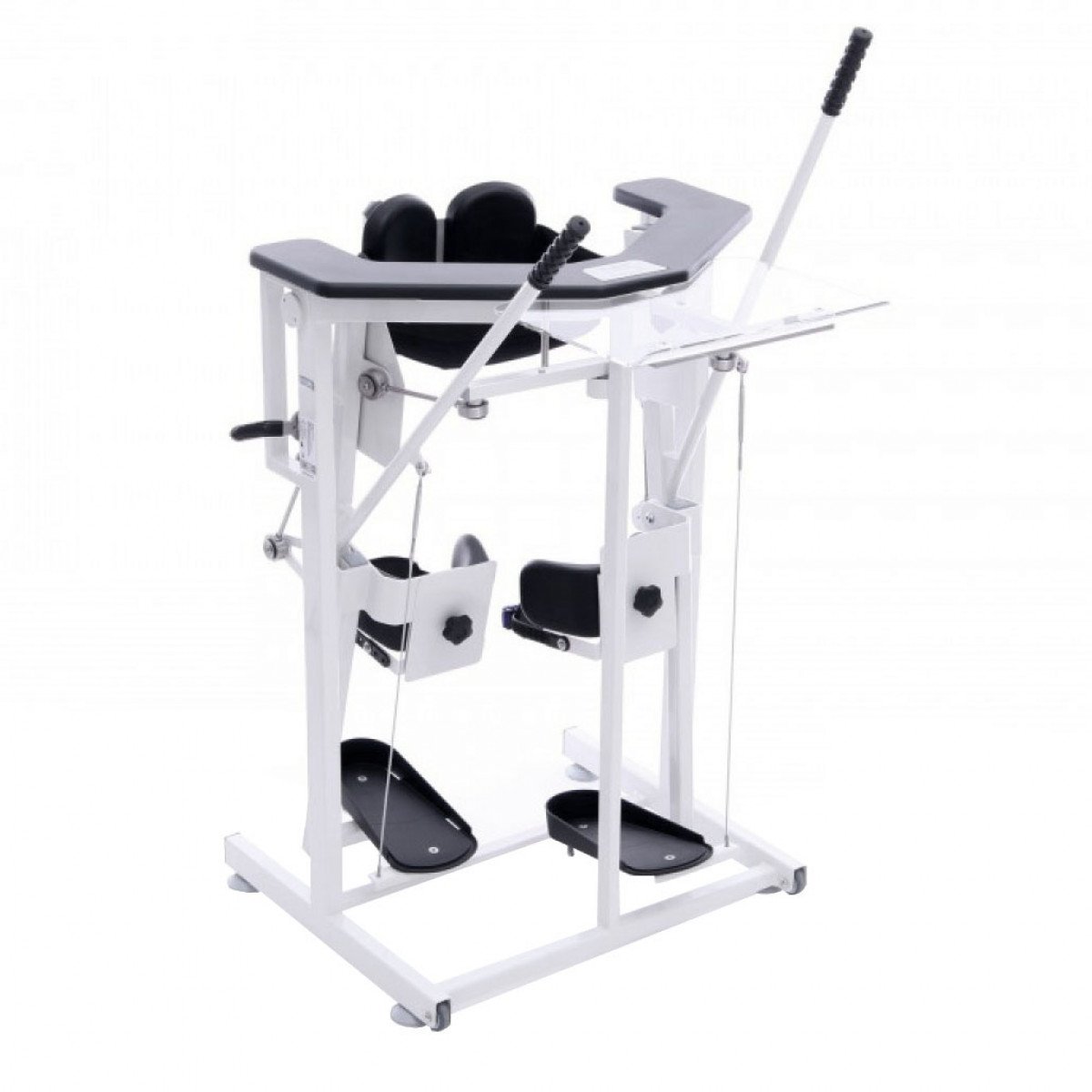 Для пациентов с повреждением шейного и верхнегрудного отдела спинного мозга предусмотрена дополнительная опора на уровне груди и с помощью инструктора или вертикализатора такие пациенты тоже могут занять вертикальное положение и выполнять реабилитационные упражнения.