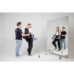 - Адаптируемые физические настройки тренажёра: длина бедра, голени, седалищного ремня, ширина и глубина таза, обхват бедра и голени, размер стельки, высота костылей