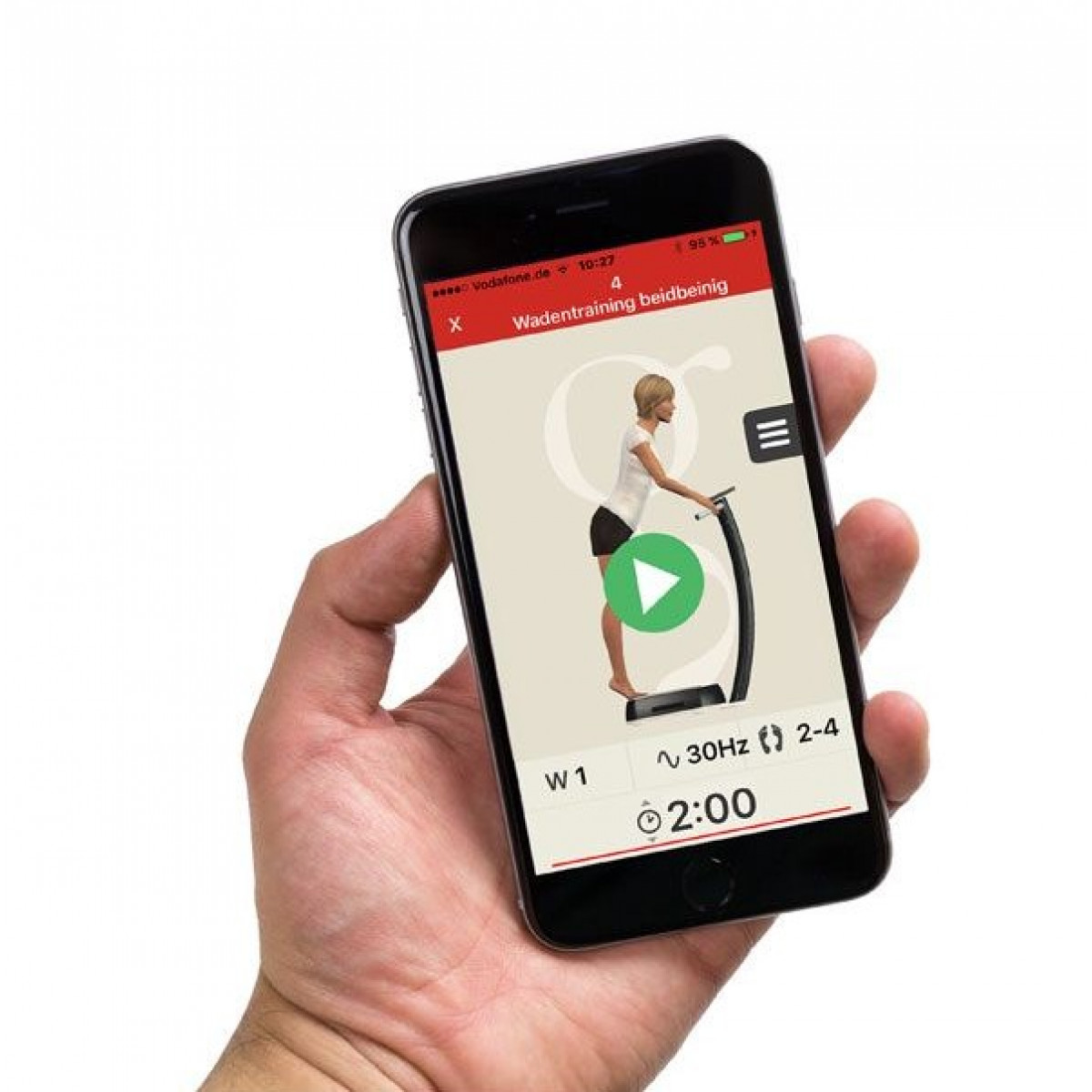 Каждое упражнение имеет подробное объяснение, как выполнить упражнение и на что обратить внимание, чтобы оптимизировать ваше тренировки. В соответствии с выбранным упражнением и уровнем интенсивности приложение Galileo Training предложит все соответствующие параметры тренировки (продолжительность, частота, положение ноги и настройка режима вобуляции).
